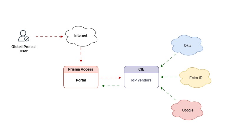 CIE then acts as a primary service provider (SP) broker for both firewalls and IdPs.