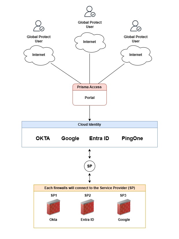 Cloud Identity is a broker. All it does is simplify authentication by acting as the middleman between your identity providers, like Okta, Entra ID, Google, etc, and Prisma Access, or any Palo security services.